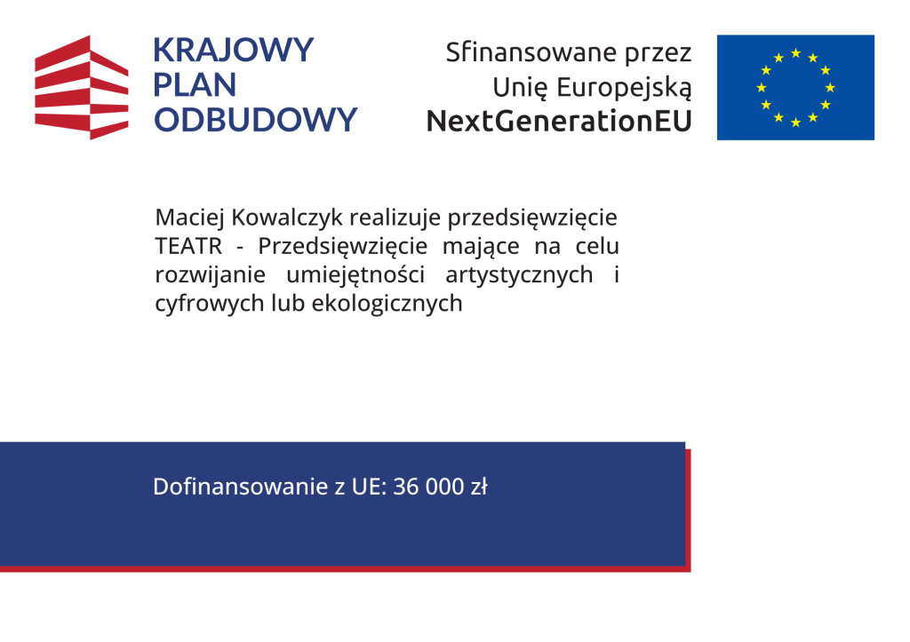 Miło nam poinformować, że w ramach II naboru w programie „KPO dla Kultury” Maciej Kowalczyk otrzymał stypendium na realizację pełnowymiarowego słuchowiska multimedialnego na podstawie autorskiego dramatu pt. Jednia.